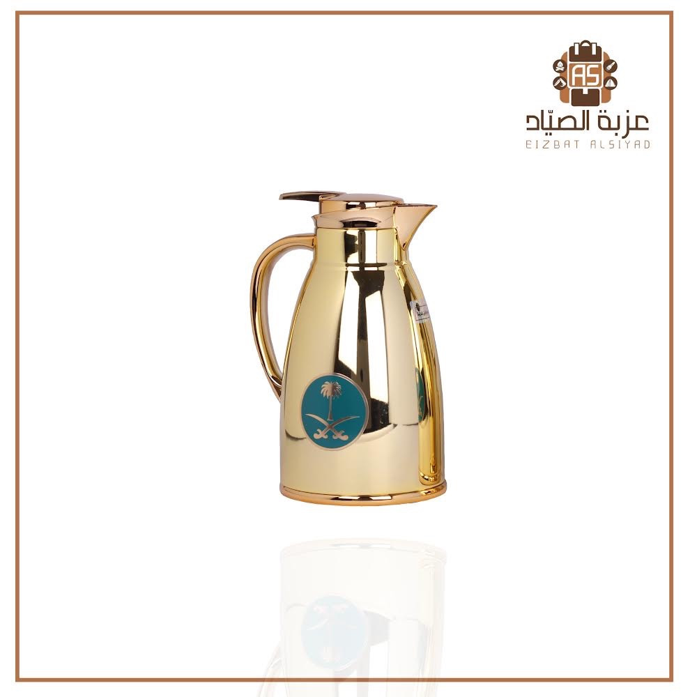ترمس قهوة وشاي ذهبي مع شعار سيفين ونخلة