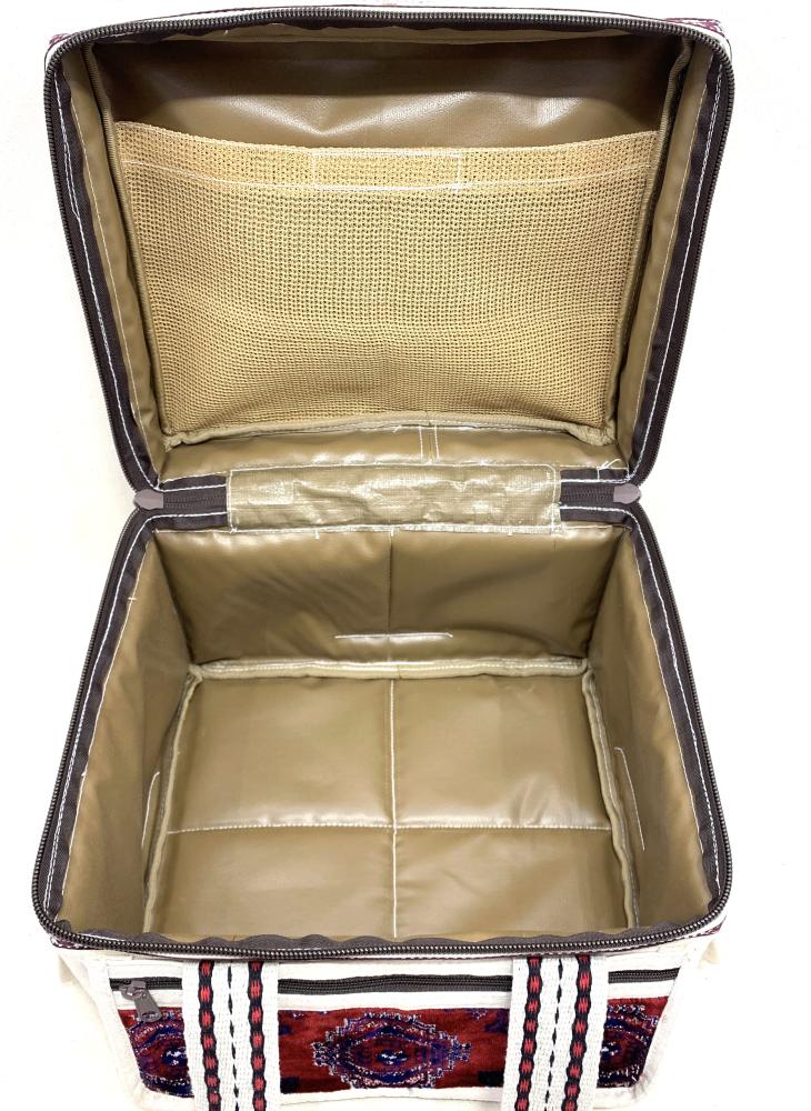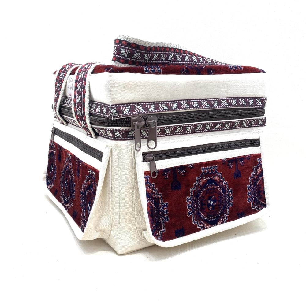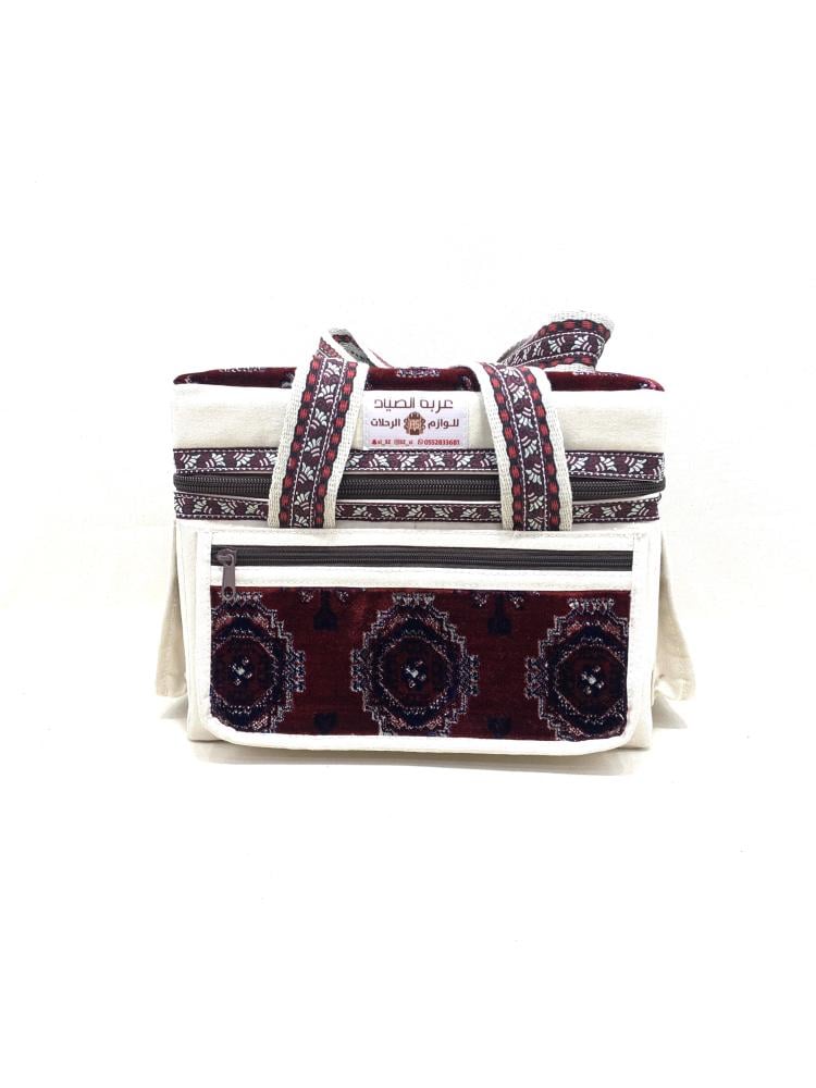 شنطة قماش تركي مع ابيض مطرز عنابي