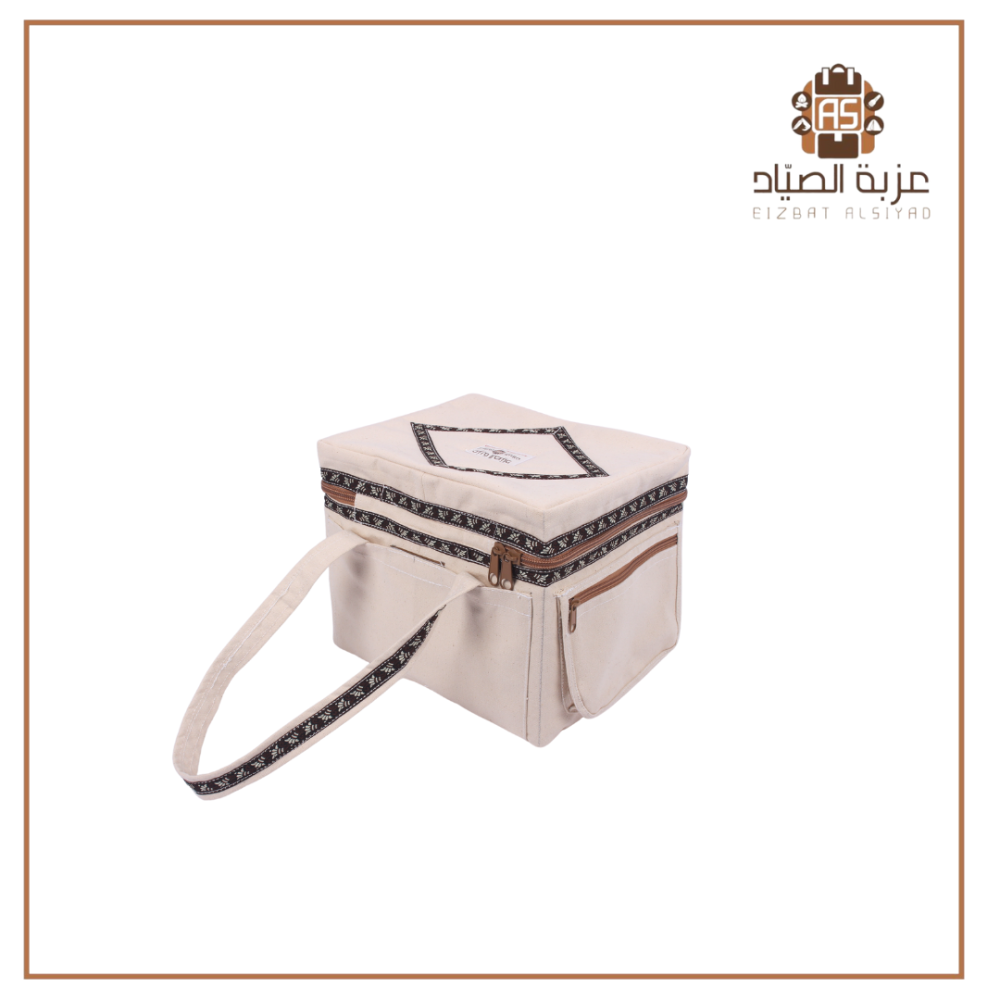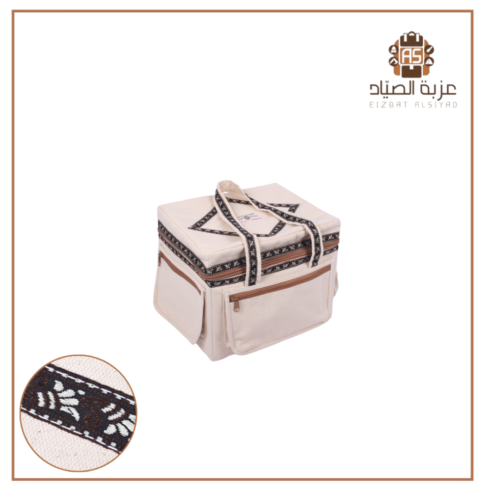 شنطة مطرز قماش ابيض بني