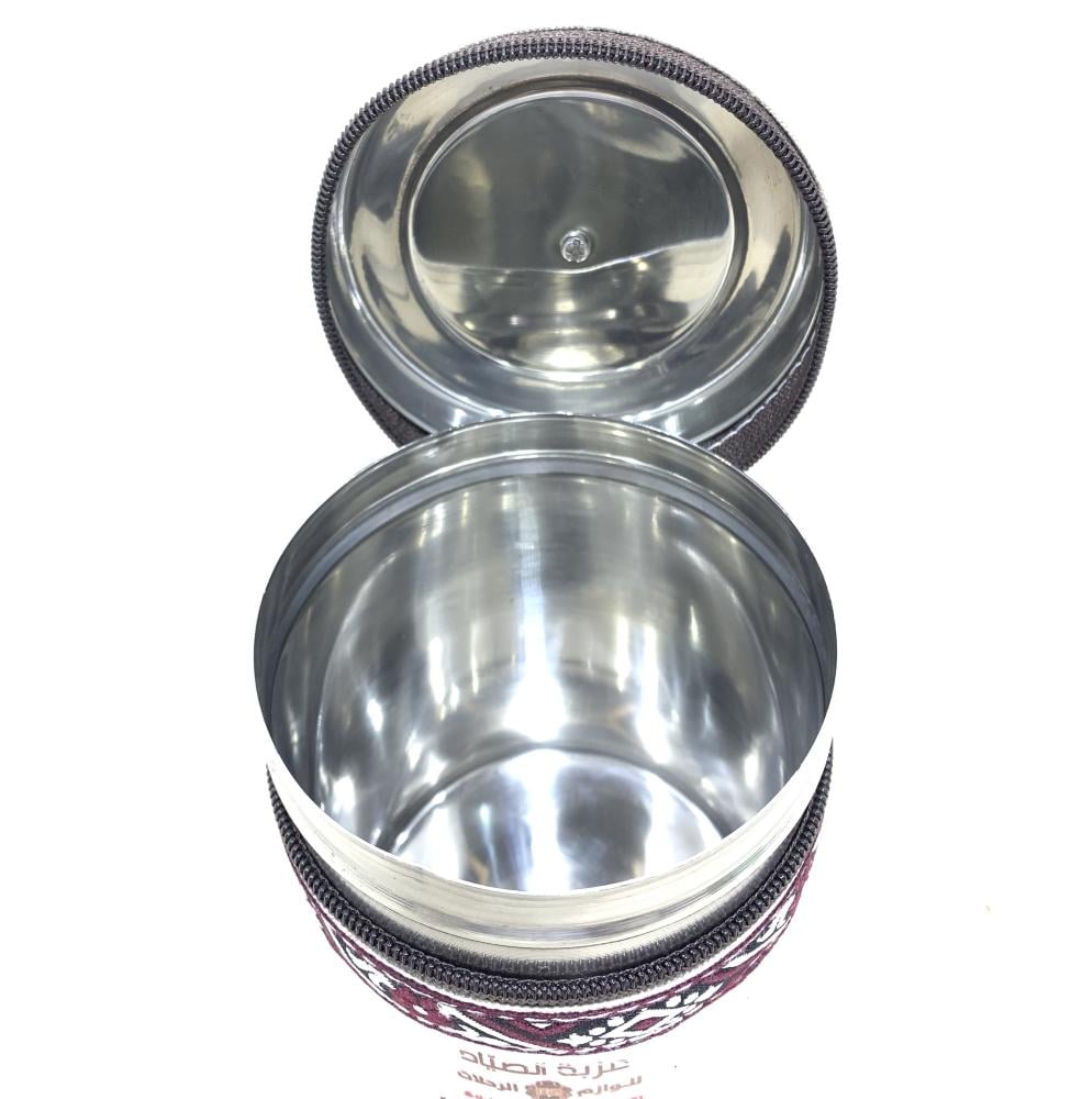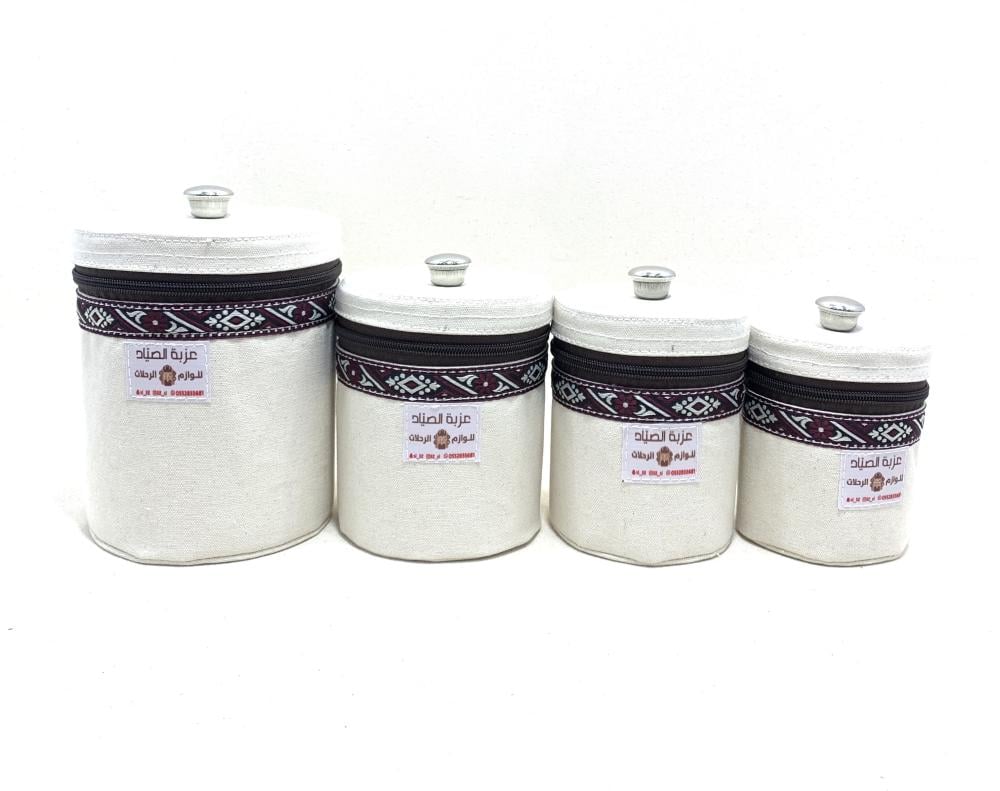 طقم علب استيل ملبس قماش ابيض مطرز من ١٠ إلى ١٤