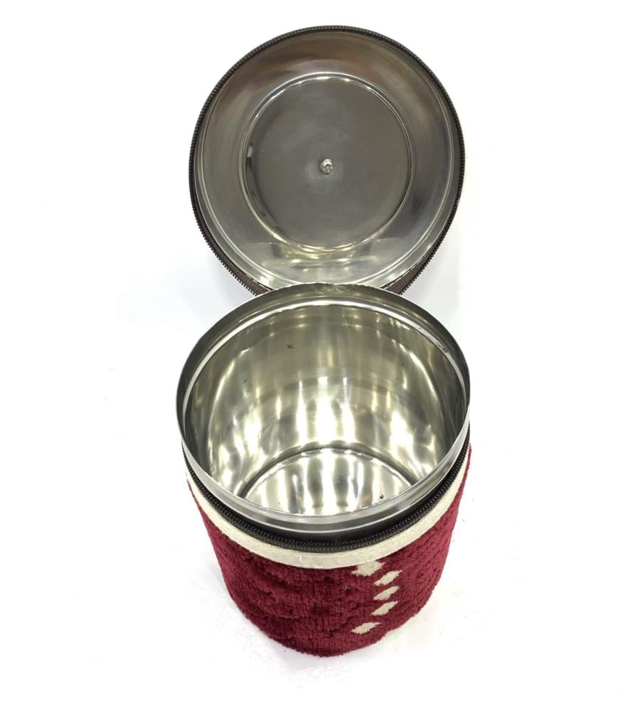 طقم علب استيل ١٠/١٤ سم ملبس ابو طير احمر