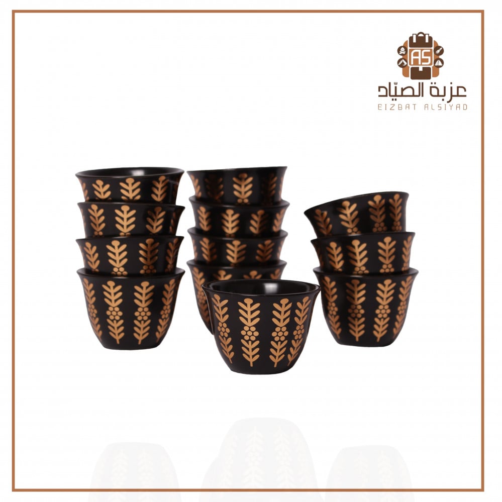طقم فناجيل عدد 12 نقش السنبلة اسود